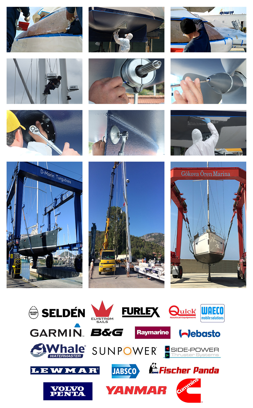 Teknenizin ve ekipmanınızın tüm teknik servis ve önleyici periyodik bakımlarını üstlenme, ve bir çok markalar için ihtiyacınız olan yedek parçaları temin ediyoruz. Türkiye kara sularında teknik desteğe ihtiyaç duyan ve dünya çapında seyahat eden diğer üreticilerin markaları da dahil olmak üzere herkesin sorularını memnuniyetle karşılıyoruz.